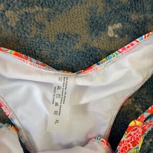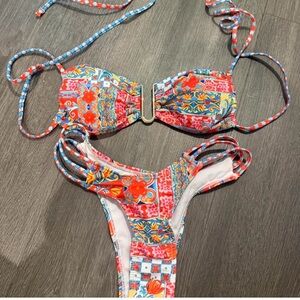 Vibrant bikini set with a multicolor pattern. Perfect for the beach.