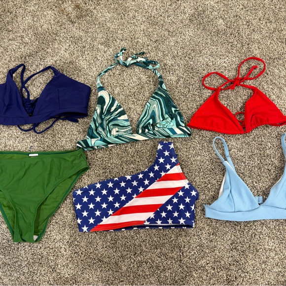 Vibrant bikini bundle collection featuring various colors and patterns. Includes red, blue, green, and patterned designs. message me if you want to only buy some of them!