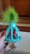 Vibrant bird cage toy with green feathers and a turquoise cage. Perfect for pets.