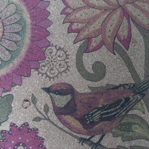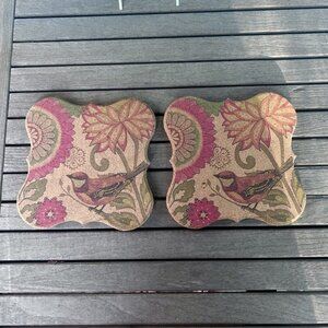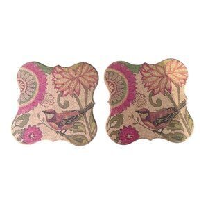 Colorful Bird and Flower Scalloped Cork Trivet Hot Plate Set of 2