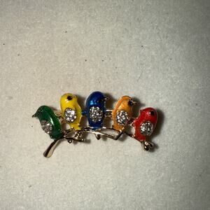 Colorful Birds On A Branch Goldtone Pin Brooch