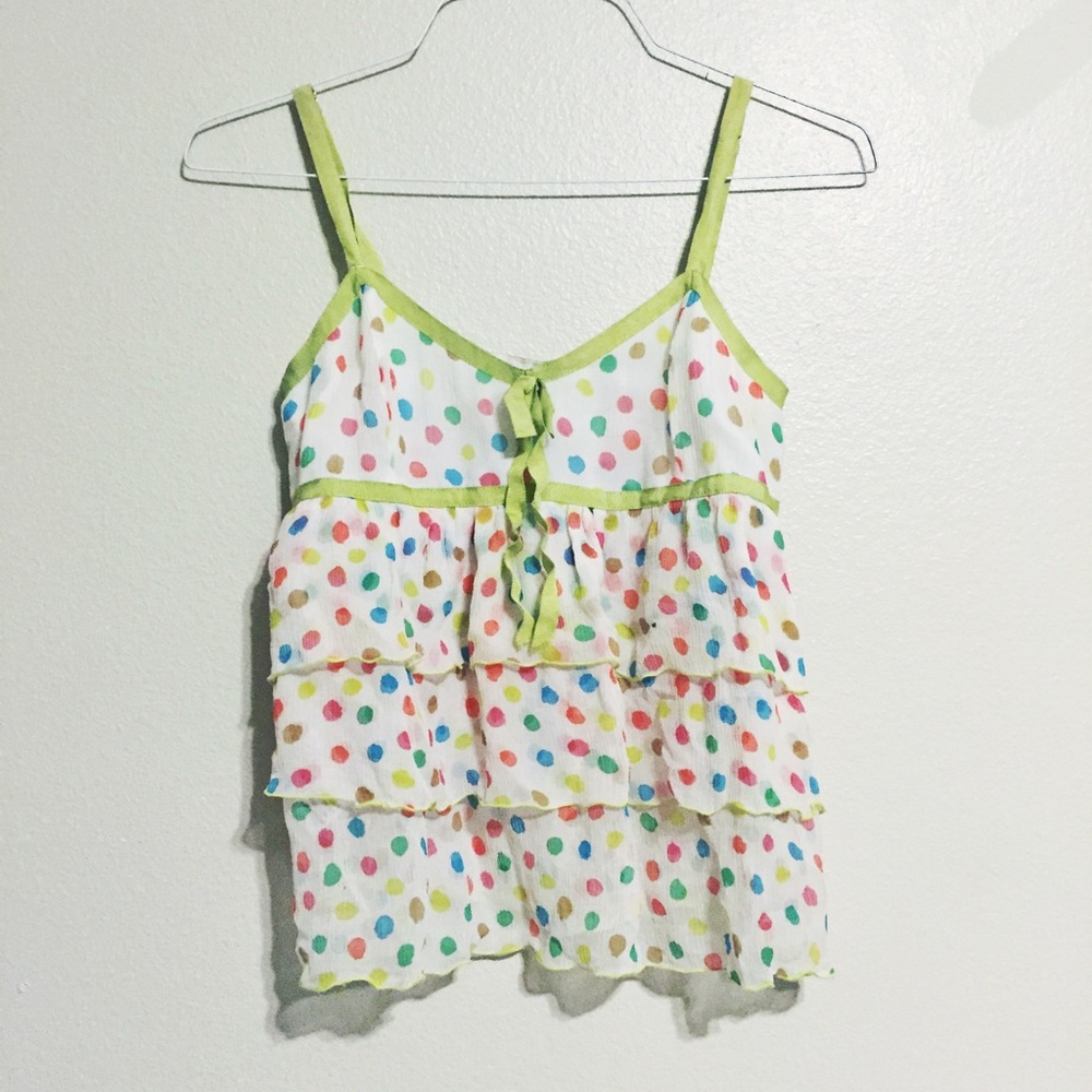 Super cute top in size: 8. Has adjustable straps. Great quality. Good condition, no holes or stains!