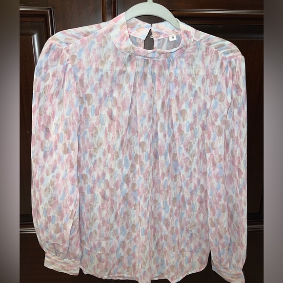 Pretty blue & pink Blouse to add color for an office look or to even formal event! (Never worn) *Tag says Small but the fit is a Medium