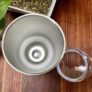 Stay hydrated or caffeinated with this double-walled wineglass made from durable stainless steel. Plastic lid. BPA-free.