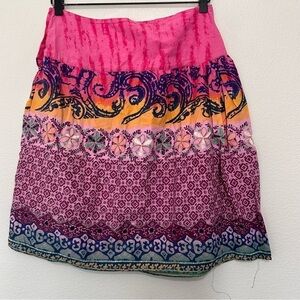Embrace vibrant style with this colorful bohemian skirt. Featuring a mix of pink, yellow, and blue hues, this skirt is perfect for adding a pop of color to your wardrobe. Ideal for casual outings or festive occasions.