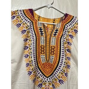 Colorful Boho Bohemian Tunic Top Short Sleeve Multicolor Standard Size Yellow