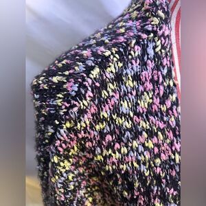 Colorful Boho Cardigan Sweater Black Neon Popcorn Knit Dopamine Hayden Sz S / M
