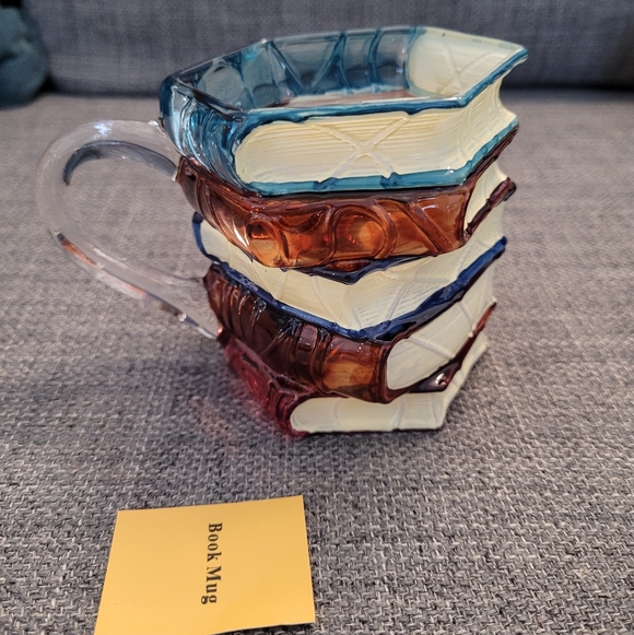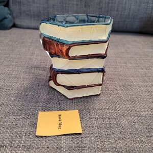 Add a literary touch to your home with this colorful book stack mug. Featuring vibrant shades of blue, orange, and red, this unique piece is perfect for book lovers.