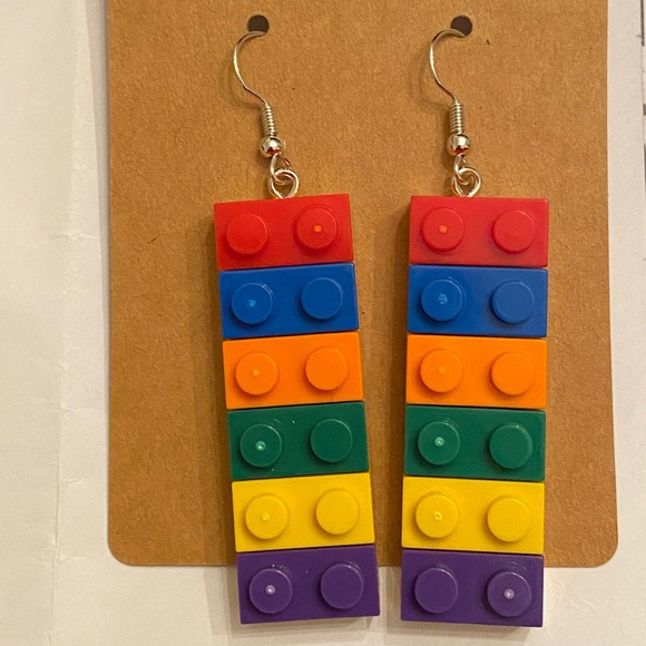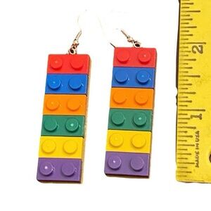 Add a playful touch to your style with these colorful building block earrings. Featuring vibrant shades of red, orange, yellow, green, blue, and purple, these earrings are perfect for the young at heart.