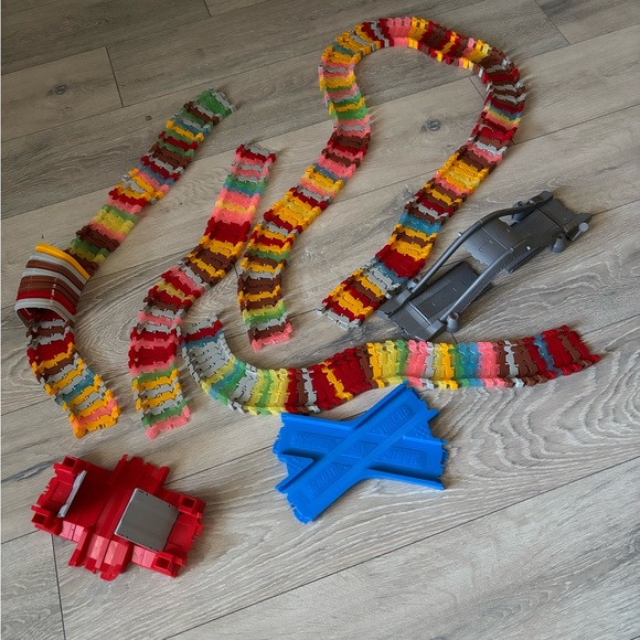 Engage your child's creativity with this vibrant building track set. Featuring a spectrum of colors including red, blue, yellow, and green, this set offers endless fun and learning opportunities. Perfect for young builders to explore and create.