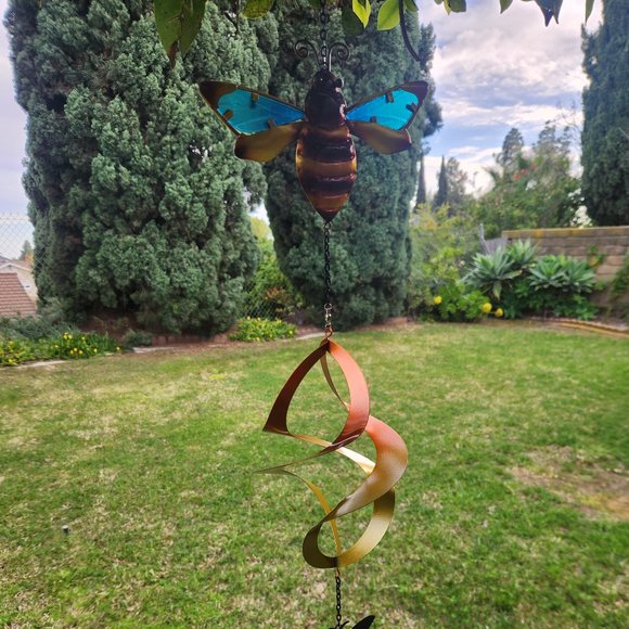 Colorful Bumble Bee Glass & Metal-Spinner & Chime, Length: 28.75 Inch