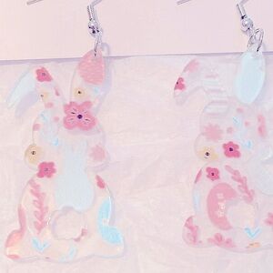 Colorful Bunny Earrings Pink Blue and Pastel Acrylic Dangle Spring Easter NEW