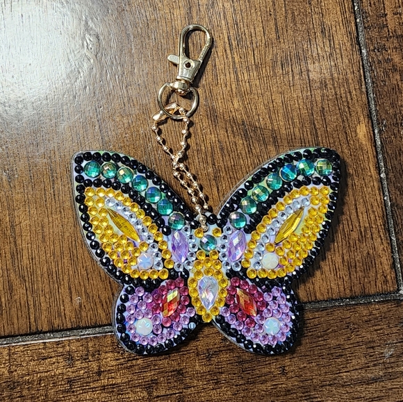 Add a touch of elegance to your accessories with this colorful butterfly key holder. Featuring vibrant shades of yellow, purple, and black, this piece is both stylish and functional.
