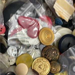 A vibrant assortment of buttons and sewing accessories in various colors.