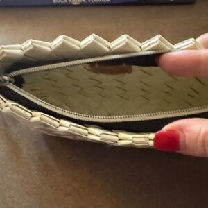 Add a pop of color to your outfit with this vibrant woven clutch. Perfect for any occasion.