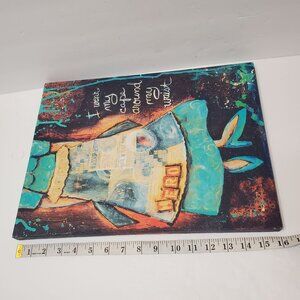 This vibrant 16x12 Canvas Art Print, "I Wear My Cape Around My Waist," by June Pfaff Daley is a whimsical addition to any wall. Its eclectic style and colorful palette of blues and greens make it a standout piece for kitchen decor.