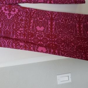 Playful and vibrant. These capris add a fun flare to street style or professional attire if you know how to style it right. The pants pulls inspiration from traditional southwestern and southamerican patterns on a poppin pink background that makes this piece loud but bot gaudy. The material is very light but not see through. Great for warmer weather.