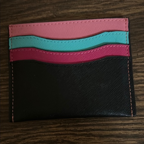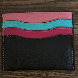 Stylish card holder with pink, teal, and black sections. Perfect for organizing cards. Gently used.