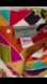 Main colors: hot pink, orange, peacock blue, chartreuse green, white, black, golden yellow, red