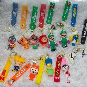 Brighten up your keys with this set of colorful cartoon character keychains. Featuring vibrant designs in red, green, blue, and yellow, these keychains are perfect for kids and fans of animated characters. Add a splash of fun to your everyday essentials.