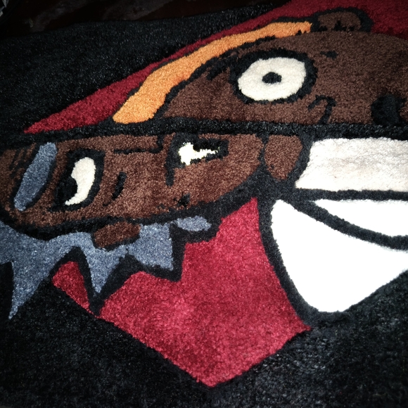 Vibrant rug featuring a cartoon character design. Perfect for adding a playful touch to any room.