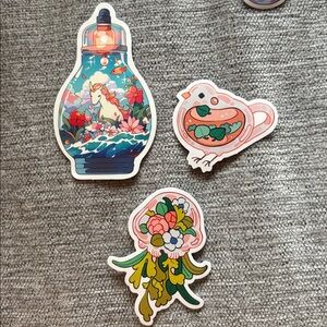 Set of vibrant cartoon stickers featuring various whimsical designs. Perfect for decorating notebooks, laptops, and more. Love this sticker bundle! I just don’t really have a good place to put them and admire them. All these stickers give a glass look. Let me know if you have any questions. 11 stickers!