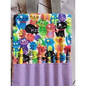 Colorful Cat Crayon Holder Childrens Coloring Tote New handmade gift bag. These bags are perfect for putting a coloring book in and taking on the go to keep little hands busy. Whether it be sitting at a doctors office to flying on a plain. These bags were made with little hands in mind.