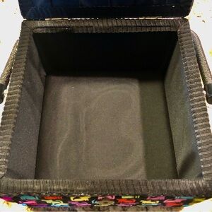 This vibrant Sewing storage box features a playful cat pattern, perfect for adding a touch of fun to your home decor. The multicolored design includes shades of black, pink, yellow, and blue, making it a lively addition to any room.