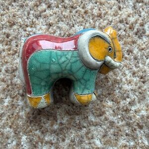 Add a touch of whimsy to your space with this colorful ceramic elephant figurine. Featuring vibrant shades of red, yellow, and green, this piece is perfect for any decor.