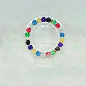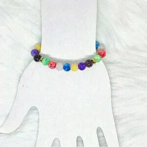 Featuring 7 colorful and vibrant beads, this elastic bracelet is made for all wrist sizes. With 8mm beads and a 2.2 inch diameter, it's sure to make a statement!