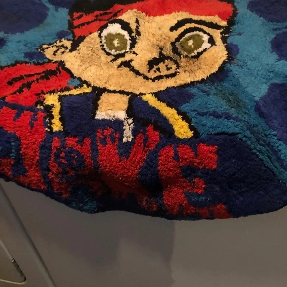 Vibrant rug featuring a playful character design. Perfect for adding a pop of color to any room.
