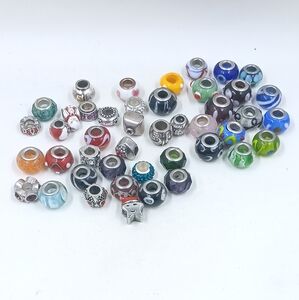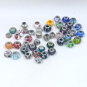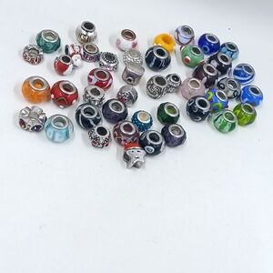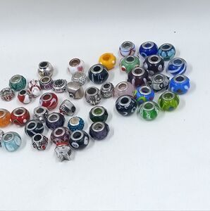 A vibrant collection of charm beads in various colors. Perfect for bracelets and necklaces. 44pieces