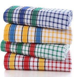 Set of four Large Kitchen Dish Towels, 16 Inch x 26 Inch checkered kitchen towels in green, red, yellow, and blue. Perfect for adding a pop of color to your kitchen.