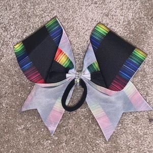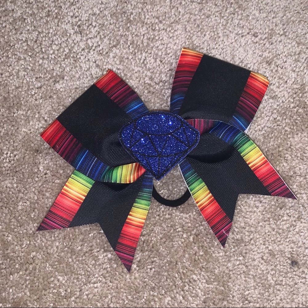 Cute, colorful, brand new cheerleading bow! Never worn, just used to accessorize my cheer bookbag. Comes with a blue velcro diamond for the middle.