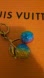 Vibrant cherry keychain with gold accents. Features multicolored cherries in blue, yellow, and pink.