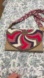 This stylish women's bag features a vibrant chevron pattern in red, pink, and purple tones. Perfect for adding a pop of color to any outfit.