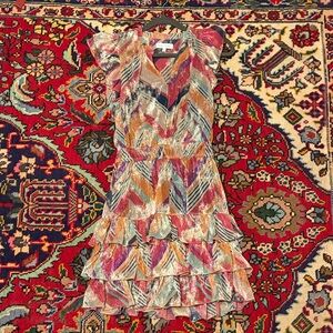 Add a splash of color to your wardrobe with this vibrant chevron mini dress. Featuring playful ruffles and a flattering fit, it's perfect for any occasion.