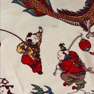 Vibrant tablecloth featuring intricate dragon, floral and scenes of daily life. Perfect for adding a touch of color to any space.