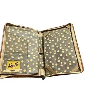 Stylish wallet featuring a vibrant circle pattern in shades of yellow, blue, and brown. Perfect for adding a pop of color to your accessories collection.