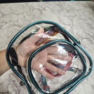New. Stylish and trendy transparent mini backpack with holographic accents. Perfect for adding a pop of color to any outfit. Cute and colorful mini backpack.