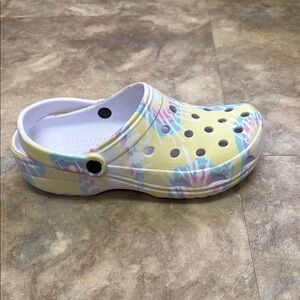 Bright and fun crocs with a playful design. Perfect for everyday adventures. Worn one time.