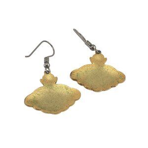 Colorful Cloisonne Floral Fan Earrings With Hook Backings