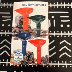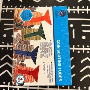 Organize your coins effortlessly with 's vibrant coin sorting tubes. Includes red, green, blue, and orange tubes for easy sorting and counting.