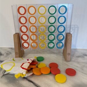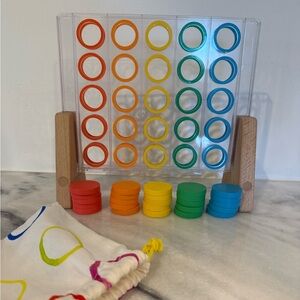 Engage your kids with this vibrant Connect Four game. Featuring red, orange, yellow, green, and blue rings, this toy is perfect for fun and learning. Comes with a handy storage bag for easy cleanup.