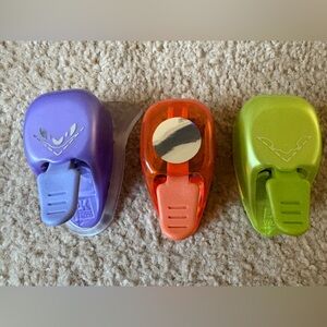 Set of colorful craft punches. Includes various shapes in vibrant colors.