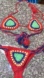 Vibrant crochet bikini set featuring a playful mix of colors. Perfect for a bold beach look.