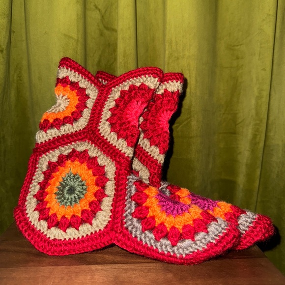 Vibrant crochet booties with a unique pattern. Perfectly condition Size 9