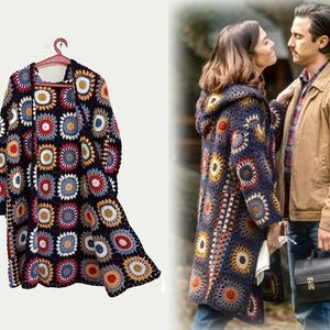 Vibrant crochet coat with a mix of colors. Perfect for adding a pop of color to any outfit. Handmade.