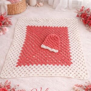 Vibrant crochet hat with ruffle design. Features red, orange, and purple hues.