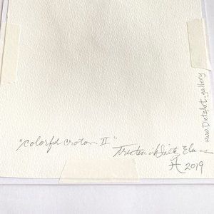 This amazing plant grew in the artists garden and the leaf was painted from life using juicy acrylic paint markers. There’s even a flash of gold that accents this pretty piece.